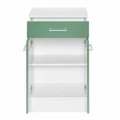 - Korpus melaminbeschichtet in Weiß, Front foliert in Grün