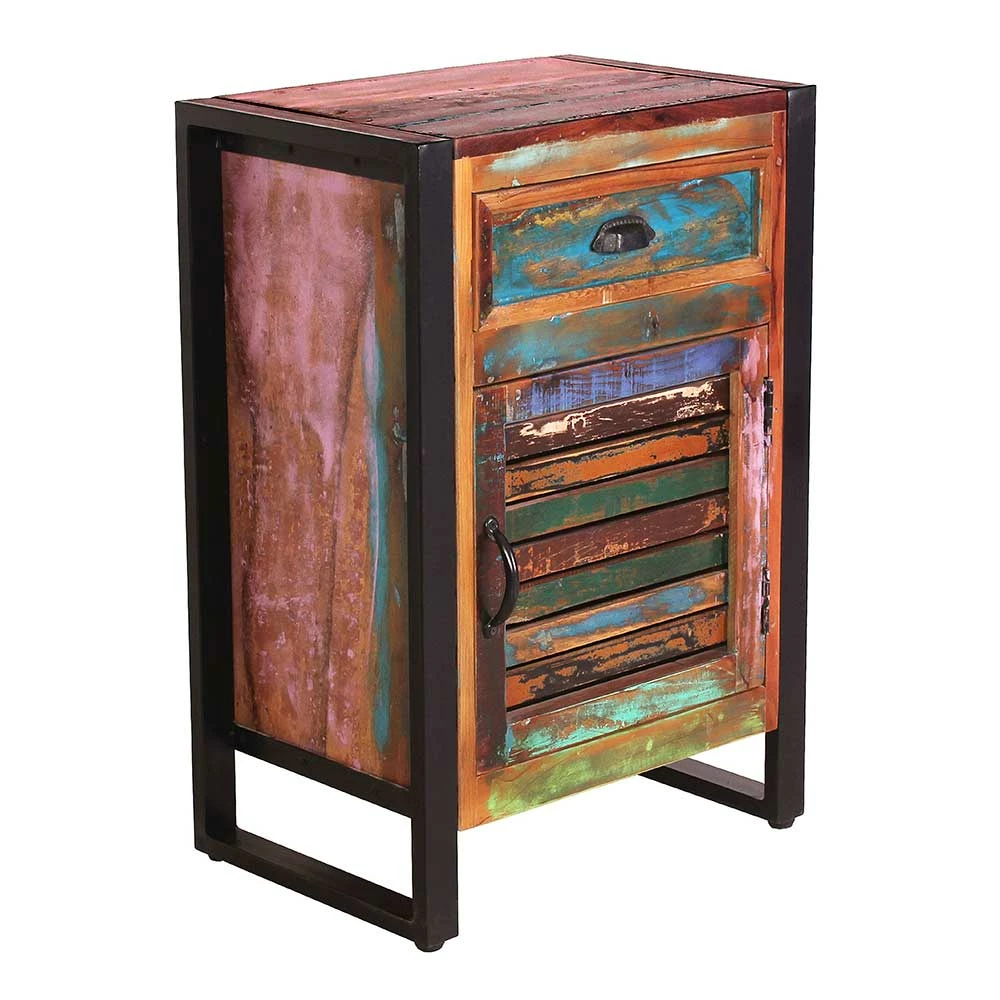 - Durch die lackierte Holzoberfläche mit bunten Farbresten wird jedes Möbel zu einem Unikat