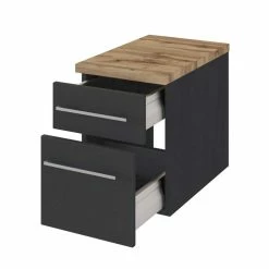 - Stilvoller Bad Unterschrank in dunkel Grau und Wildeichefarben