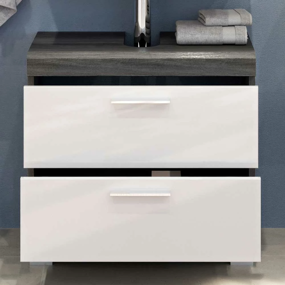 - Klasse Waschbeckenunterschrank in Weiß und Rauchgrau