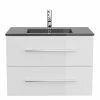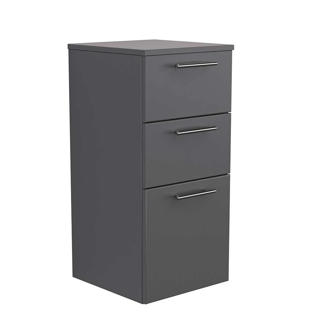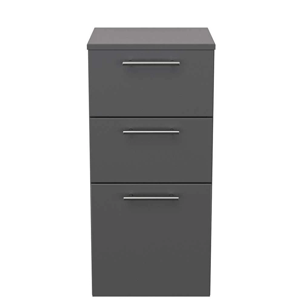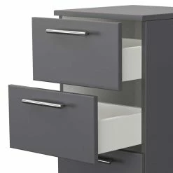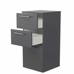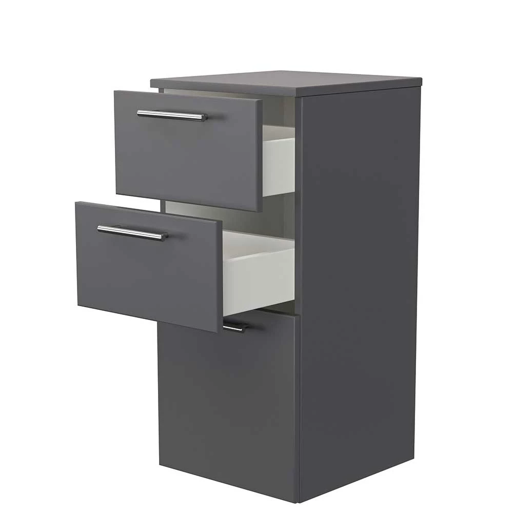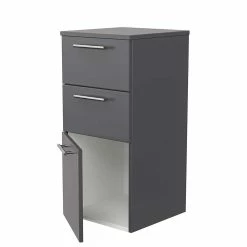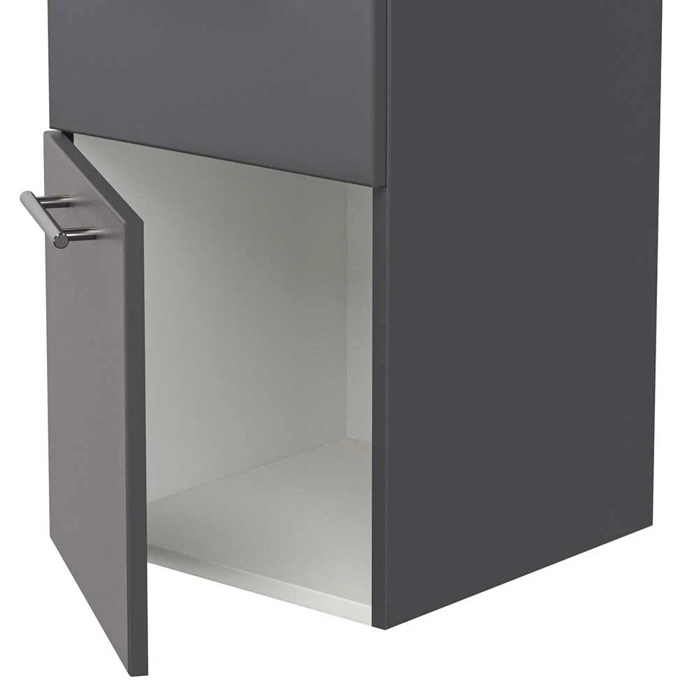 - Oberfläche in Anthrazit Seidenglanz foliert, Kanten tiefgezogen, Innendekor und Unterboden in Weiß melaminbeschichtet