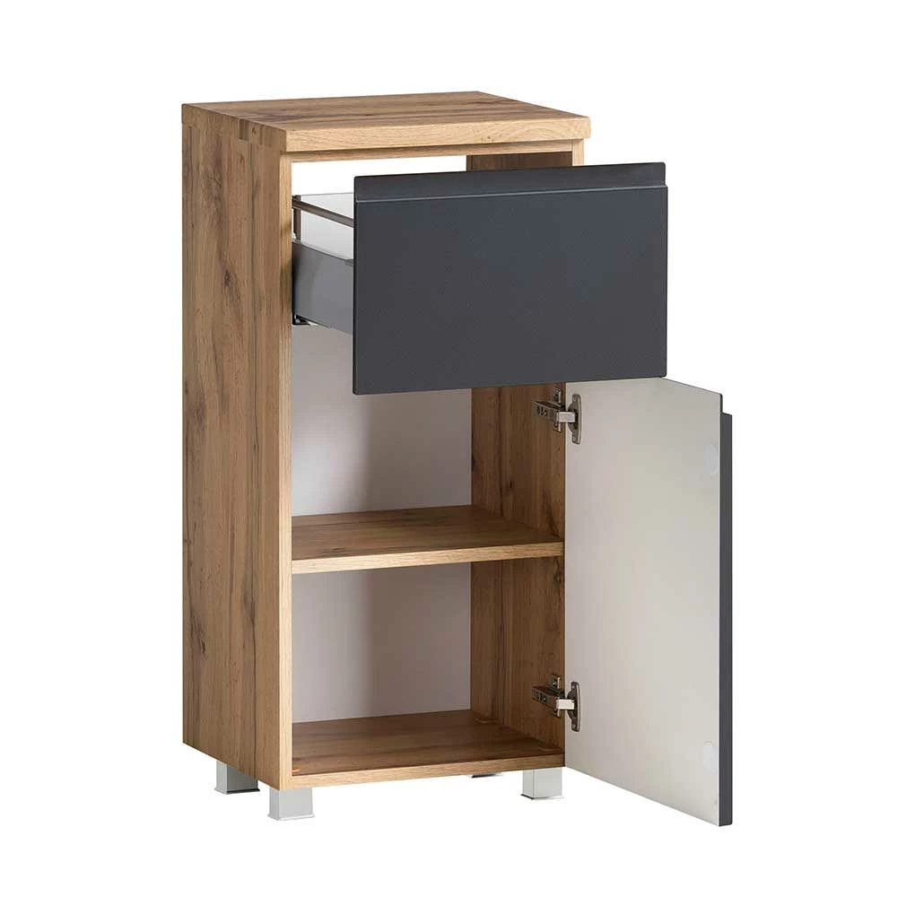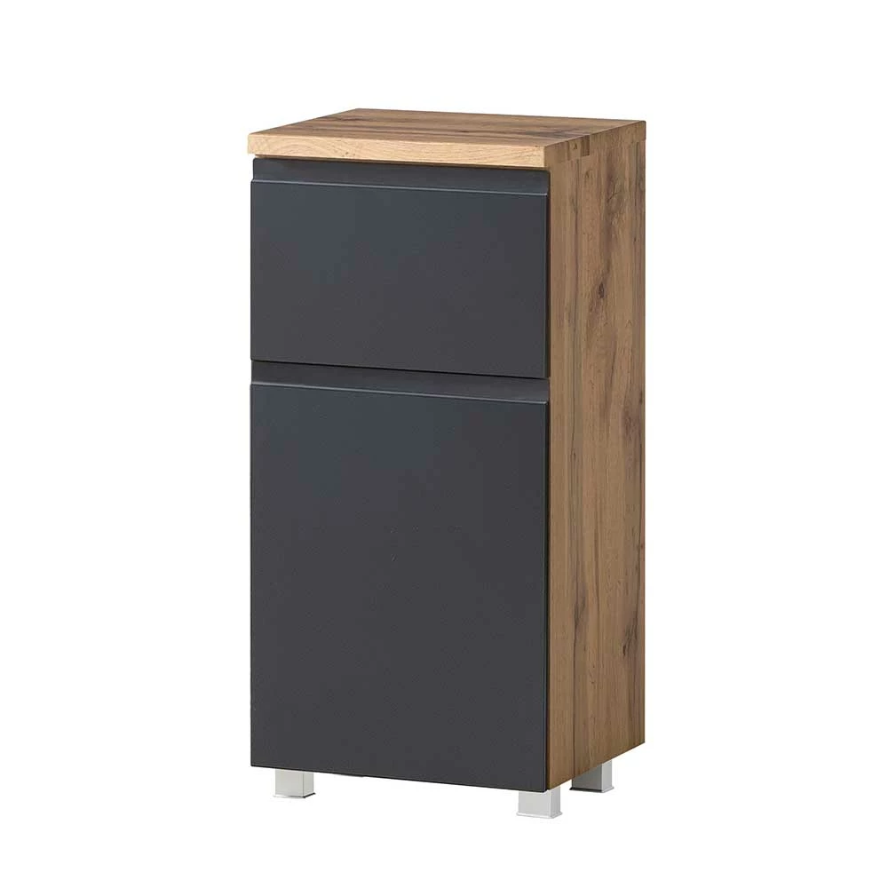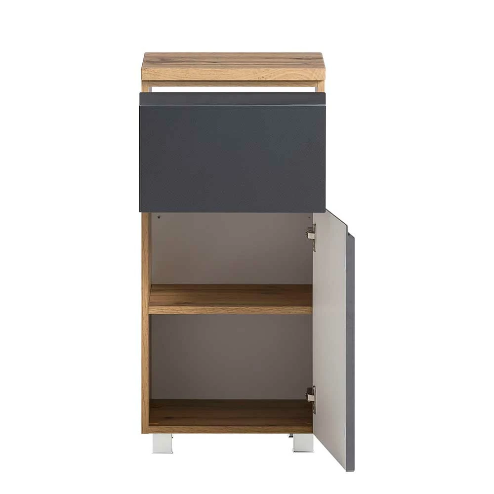 - Stabiler Unterschrank in matt Dunkelgrau und Wildeichefarben