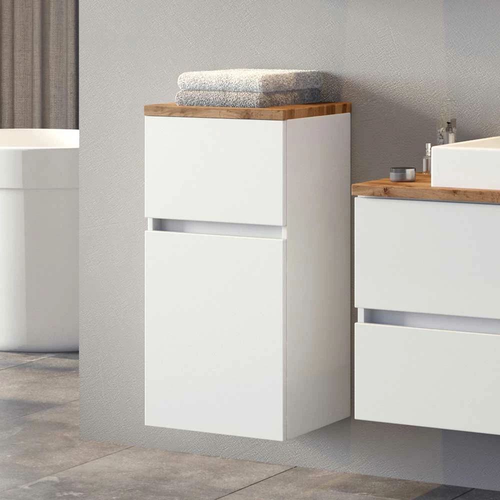 - Ansprechender Bad Unterschrank in Weiß und Wildeichefarben