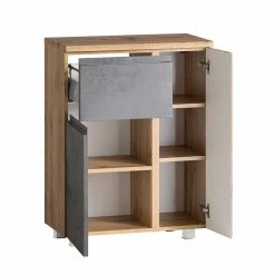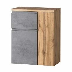 - Markanter Bad Unterschrank in Betongrau und Wildeichefarben