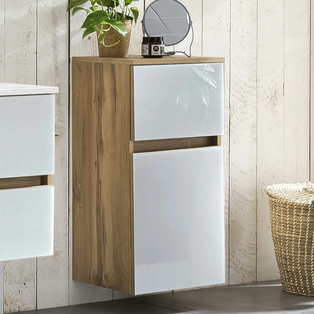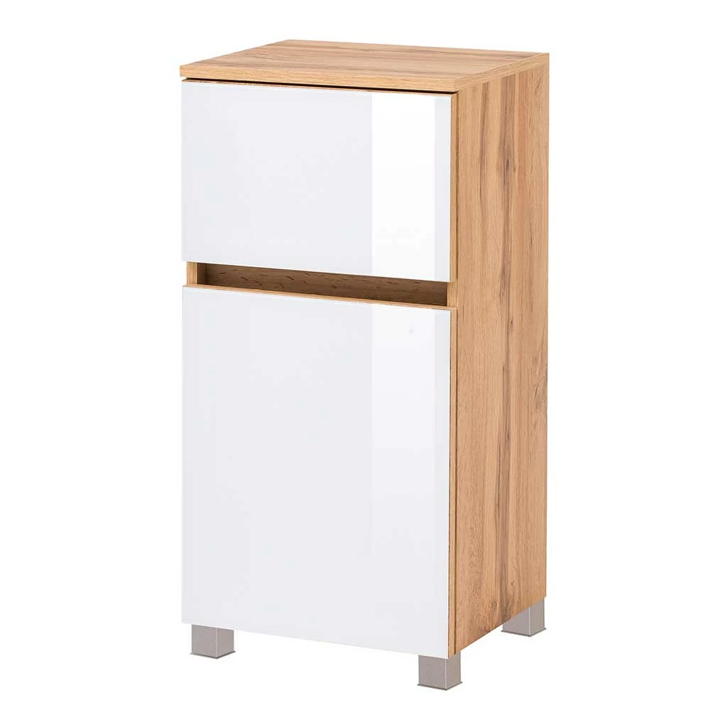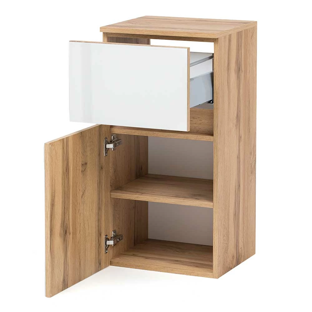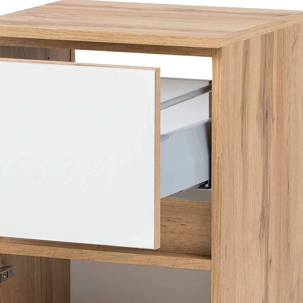 - Eleganter Bad Unterschrank in Weiß und Wildeichefarben