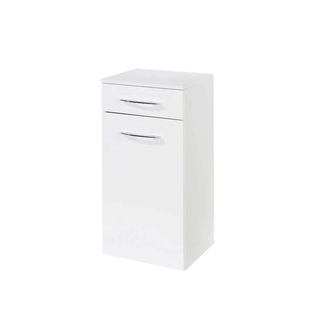 - Korpus aus melaminbeschichteter Spanplatte in Mattweiß, Front aus beschichteter MDF Platte in Hochglänzend
