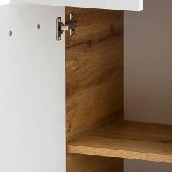 - Front in Mattweiß, Korpus in Holzoptik Eiche melaminbeschichtet