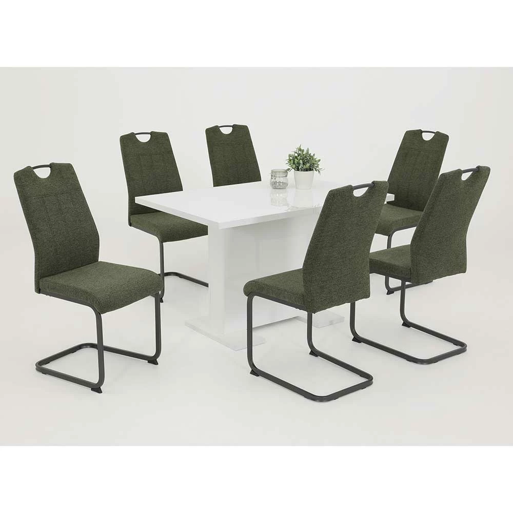 - Trendige Essgruppe in Dunkelgrün, Weiß und Schwarz