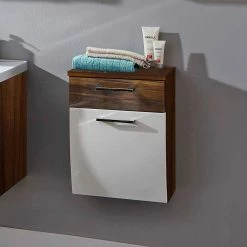 - Zierlicher Bad Unterschrank in Weiß und Walnussfarben