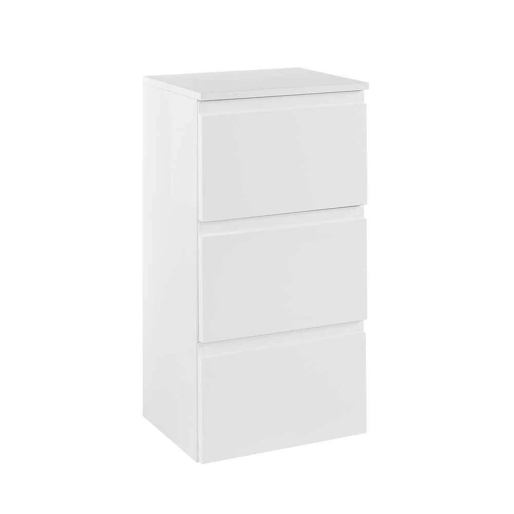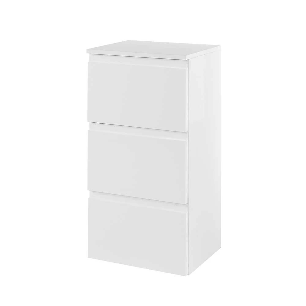 - Oberfläche der Front in Hochglanz, Korpus mattweiß melaminbeschichtet