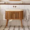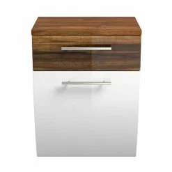 - Praktischer Bad-Unterschrank in Weiß und Walnussfarben