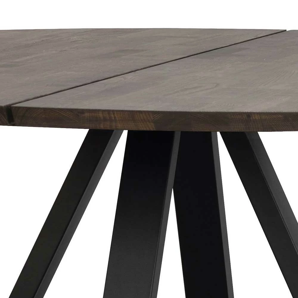 - Braun geölte Tischplatte aus fingergezinktem Eichenholz mit einer Stärke von ca. 3 cm, mittig geteilt