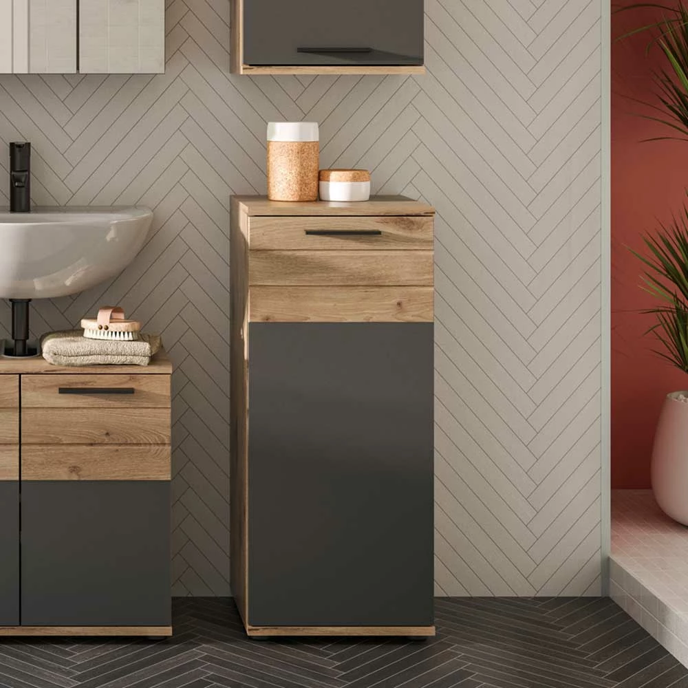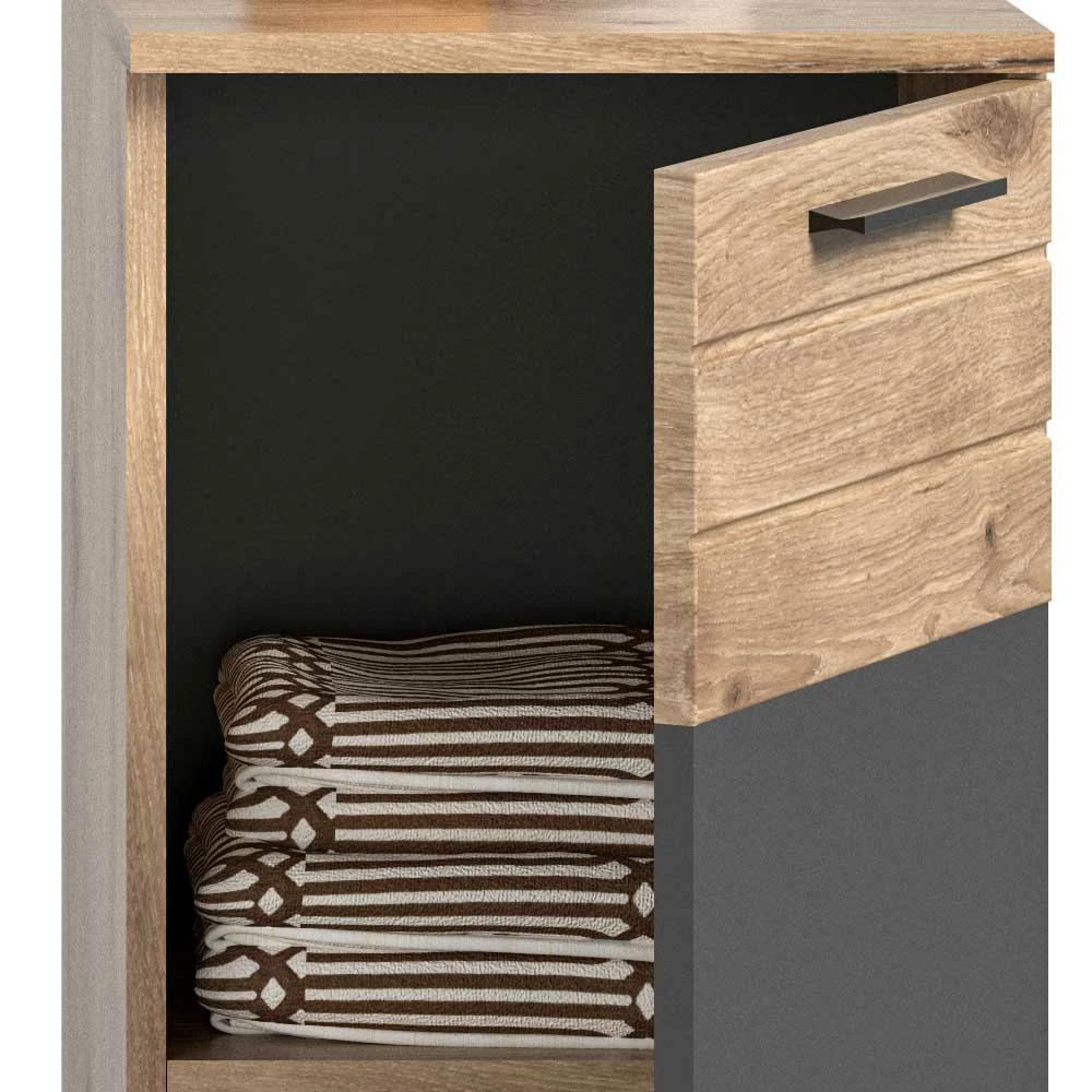 - Trendiger Bad Unterschrank in Wildeichefarben und Grau