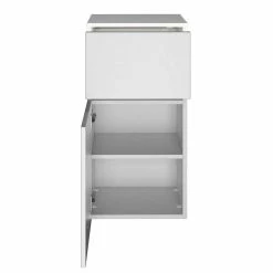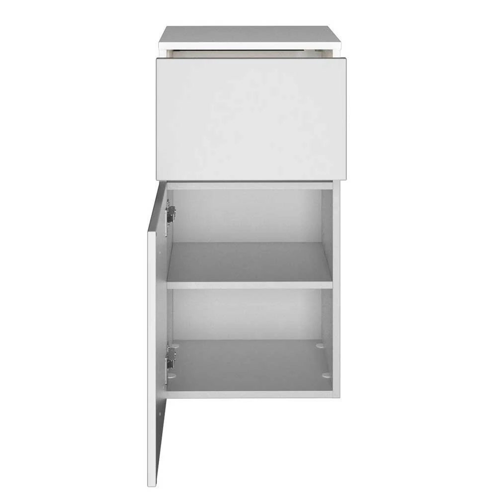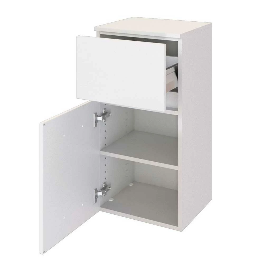 - Korpus in Weiß melaminbeschichtet, Front in matt Weiß foliert