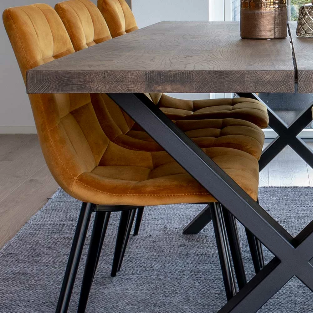 - Tischplatte aus massivem Eichenholz, lebendige Holzmaserung, mittig dekorativ geteilt