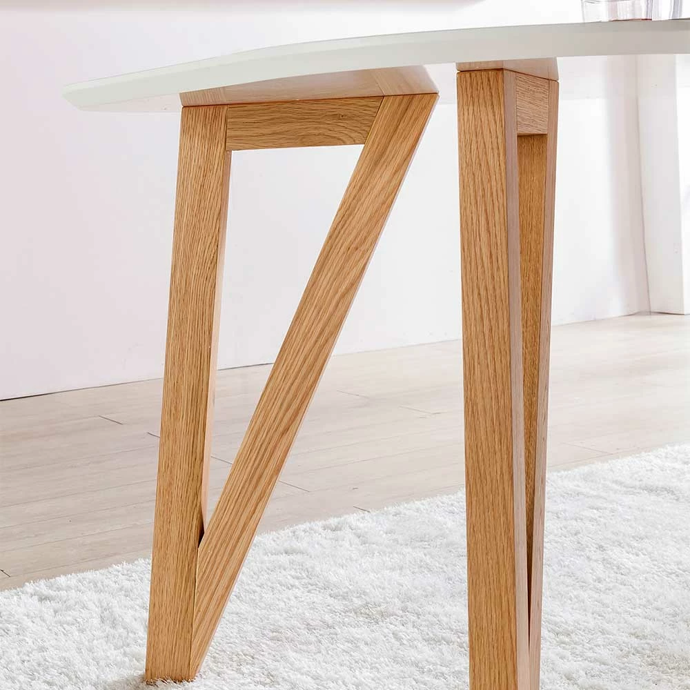 - Schräg gestelltes Vierfußgestell aus massivem Buchenholz in Eichefarben