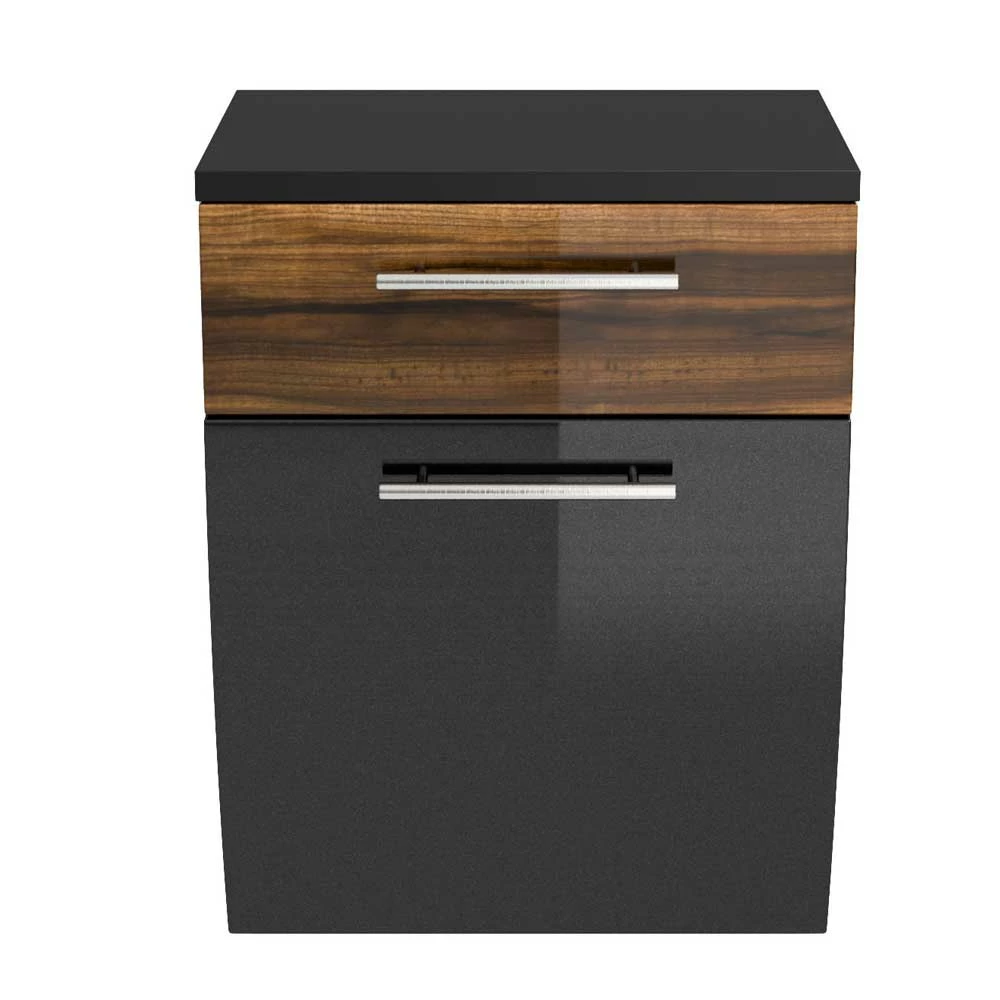 - Formschöner Bad-Unterschrank in Anthrazit und Walnussfarben