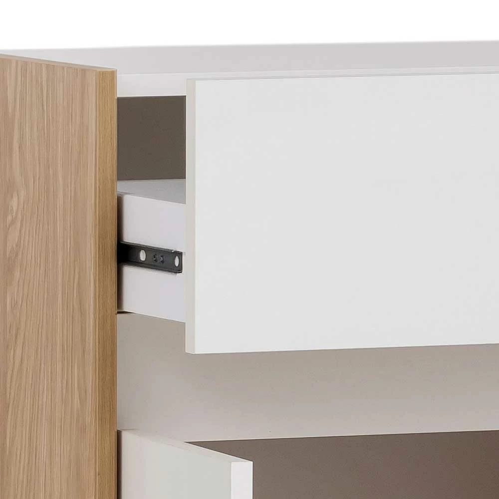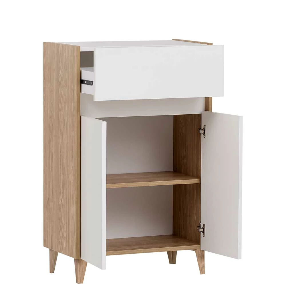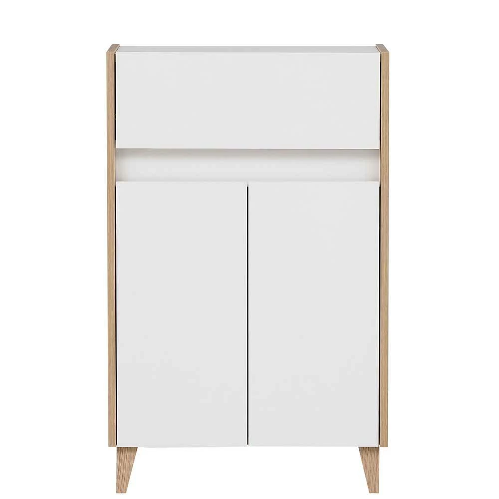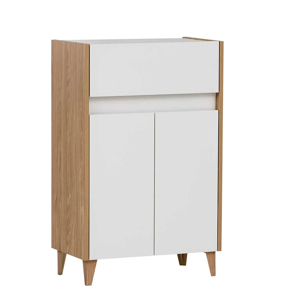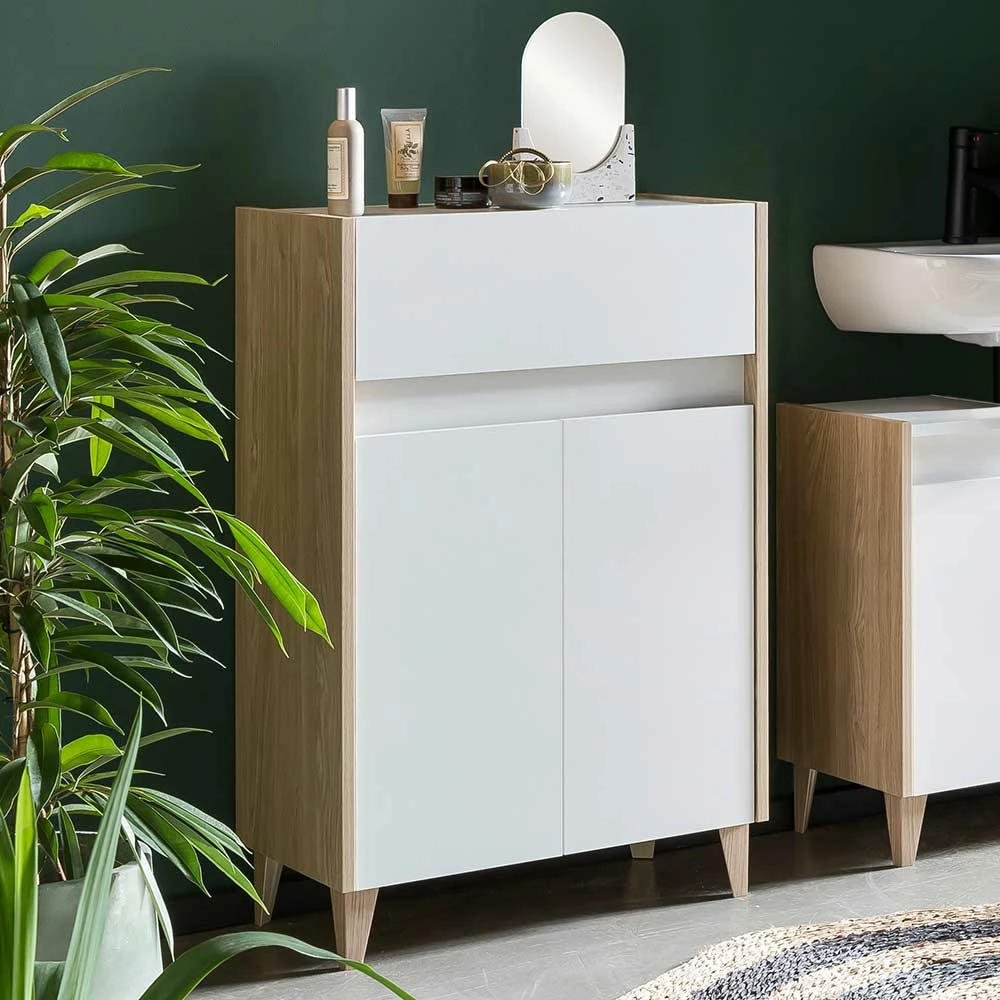 - Geräumiger Bad Unterschrank in Perlweiß und Eiche hell