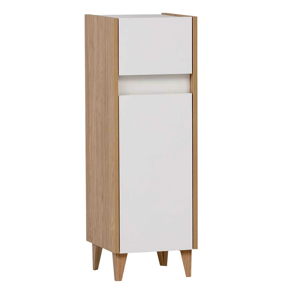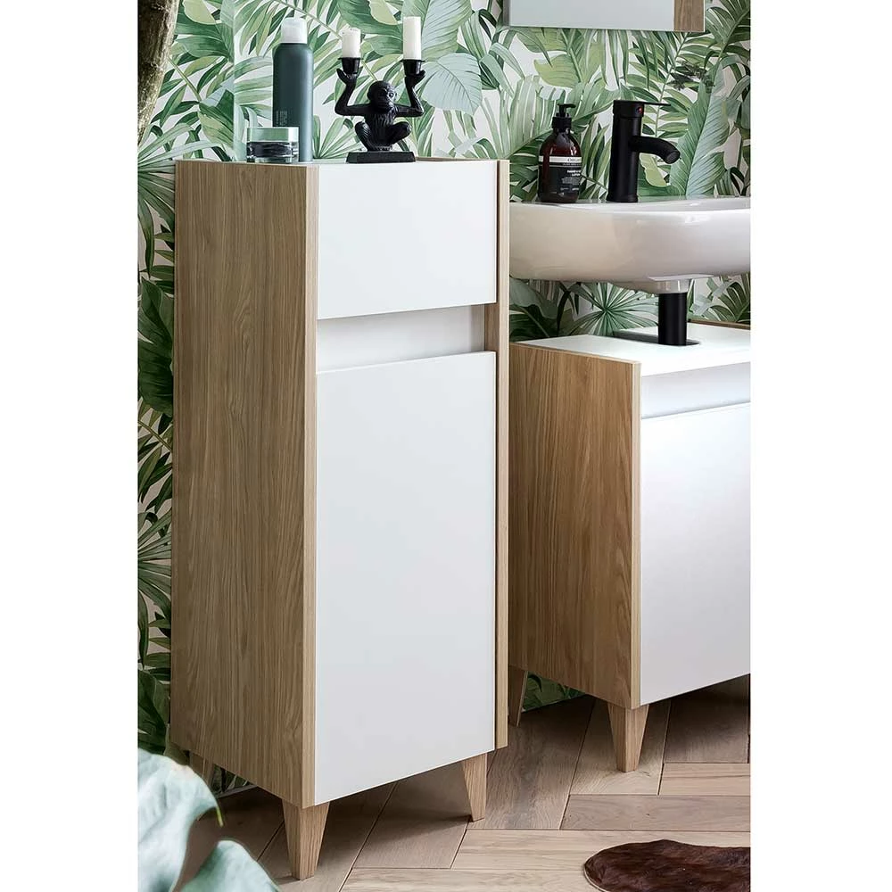 - Schicker Bad Unterschrank in Perlweiß und Eiche hell