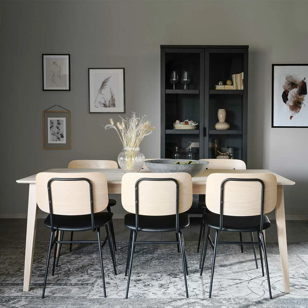 - Harmonische Essgruppe in Eiche White Wash und Schwarz