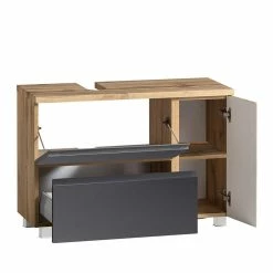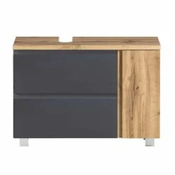 - Trendstarker Waschbeckenunterschrank in Dunkelgrau und Wildeichefarben
