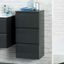 - Eleganter Bad Unterschrank in Hochglanz Anthrazit