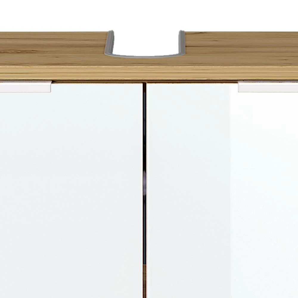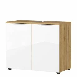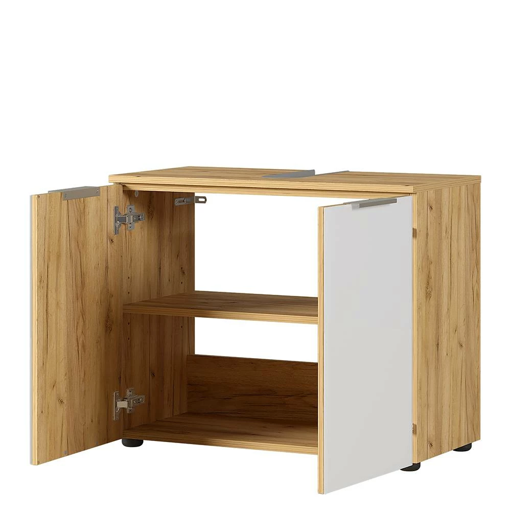 - Attraktiver Waschbeckenunterschrank in Wildeicheifarben und Weiß