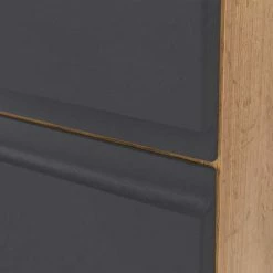 - Korpus und Tür mit Melaminbeschichtung in Holzoptik, Fronten tiefgezogen dunkelgrau matt foliert