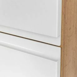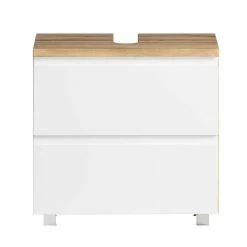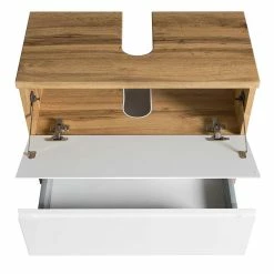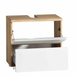 - Schlichter Waschbeckenunterschrank in Weiß und Wildeichefarben