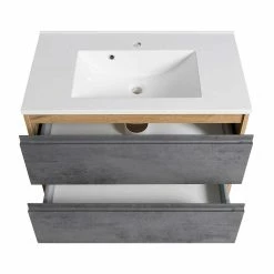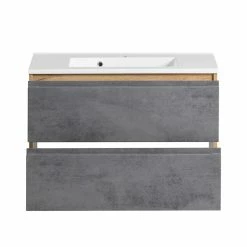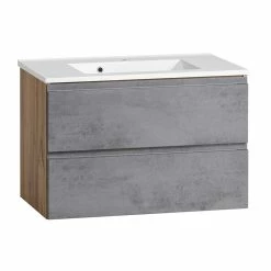 - Kompakter Waschtisch in Betongrau und Wildeichefarben