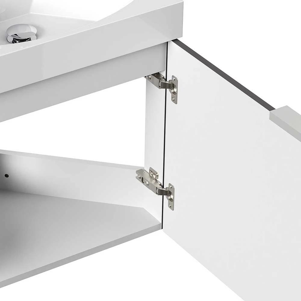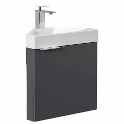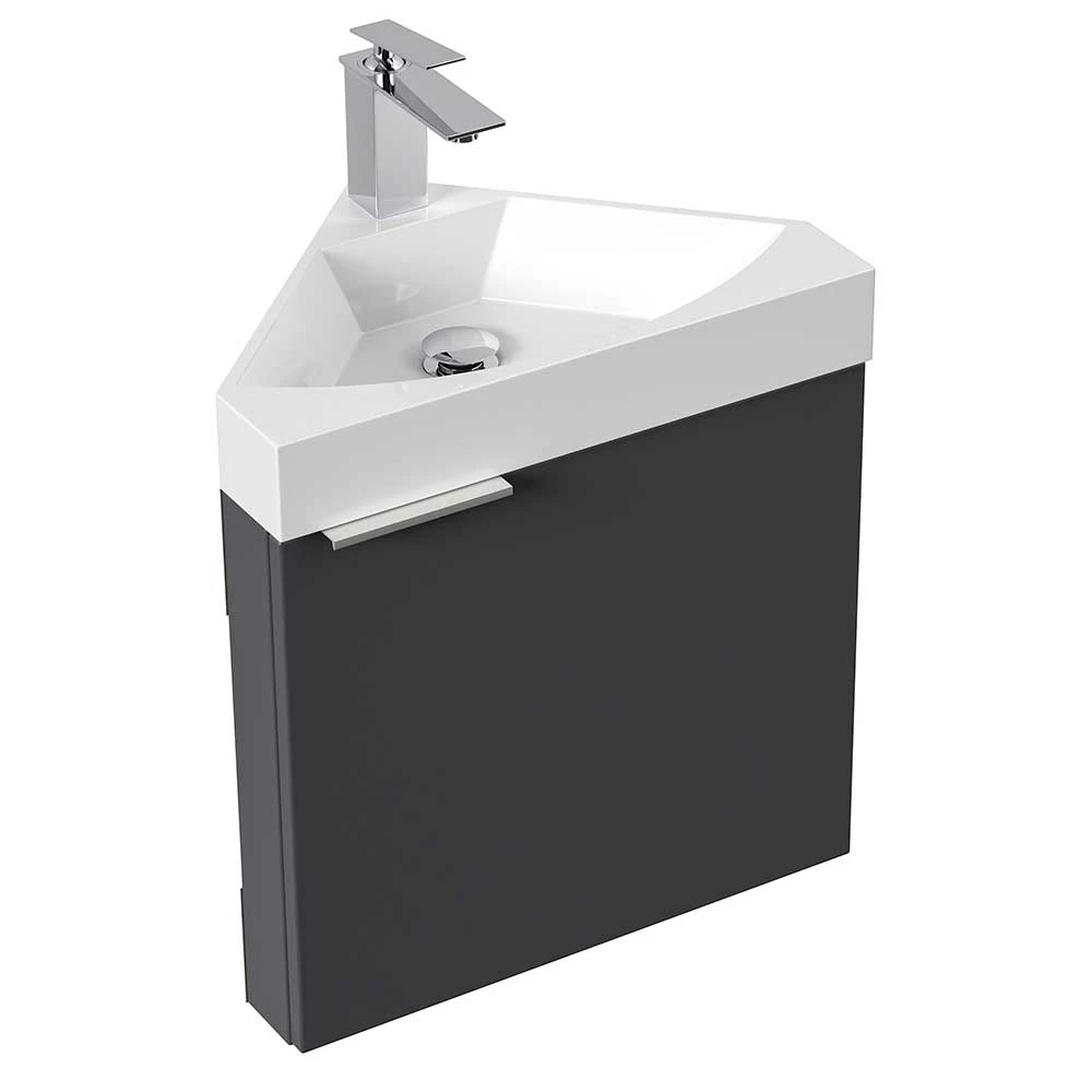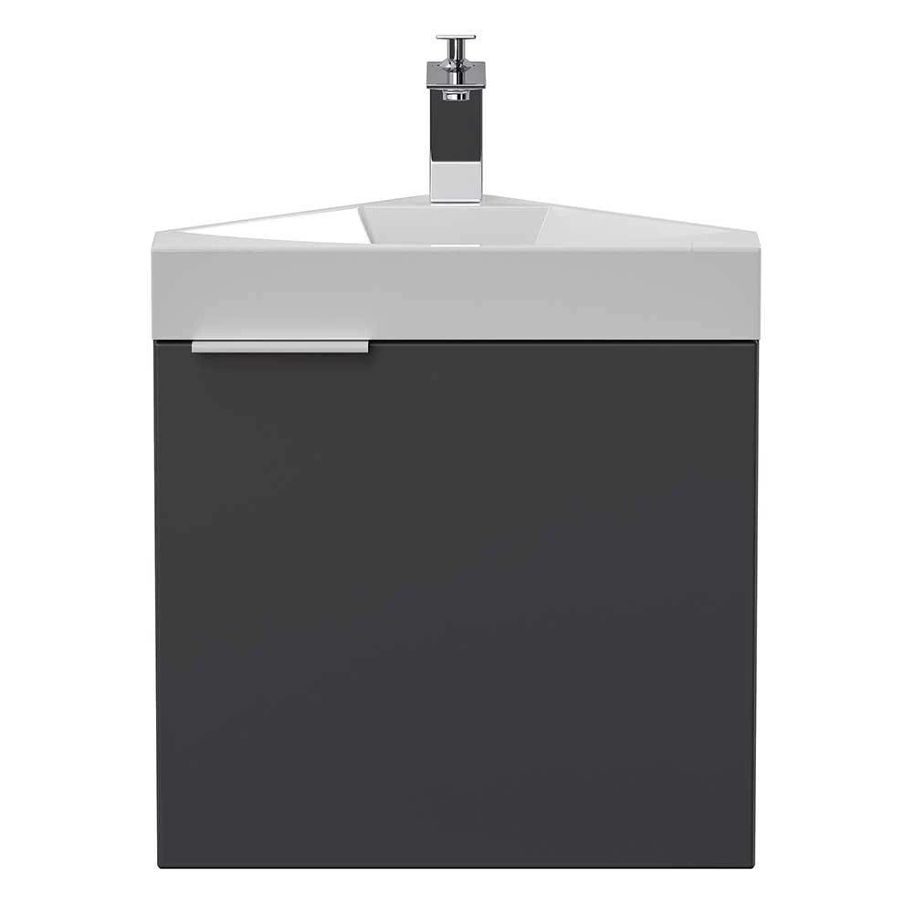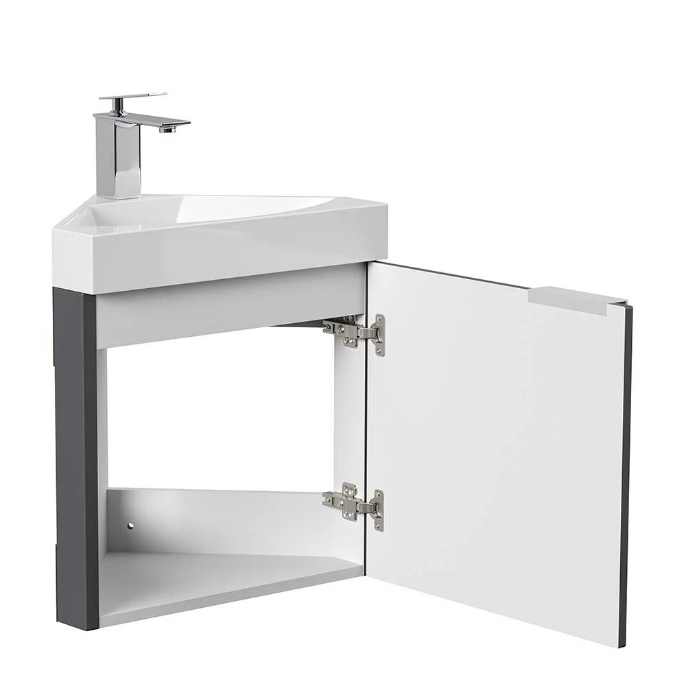 - Praktischer Eck-Waschtisch in Anthrazit und Weiß