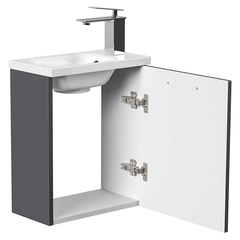 - Attraktiver Mini-Waschtisch in Anthrazit und Weiß