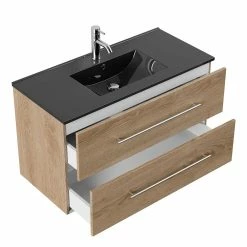 - Ausgezeichneter Waschtisch in Eiche hell und Schwarz