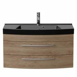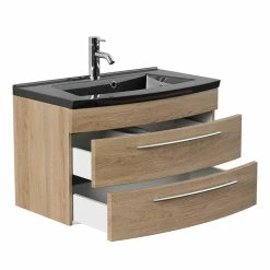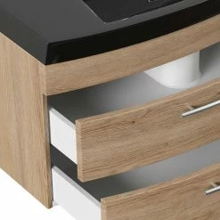 - Ansprechender Waschtisch in Eiche hell und Schwarz