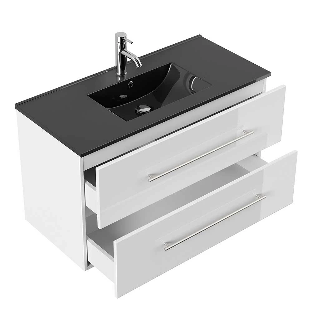 - Vorgefertigter Siphonausschnitt in der oberen Schublade