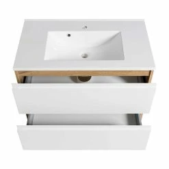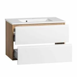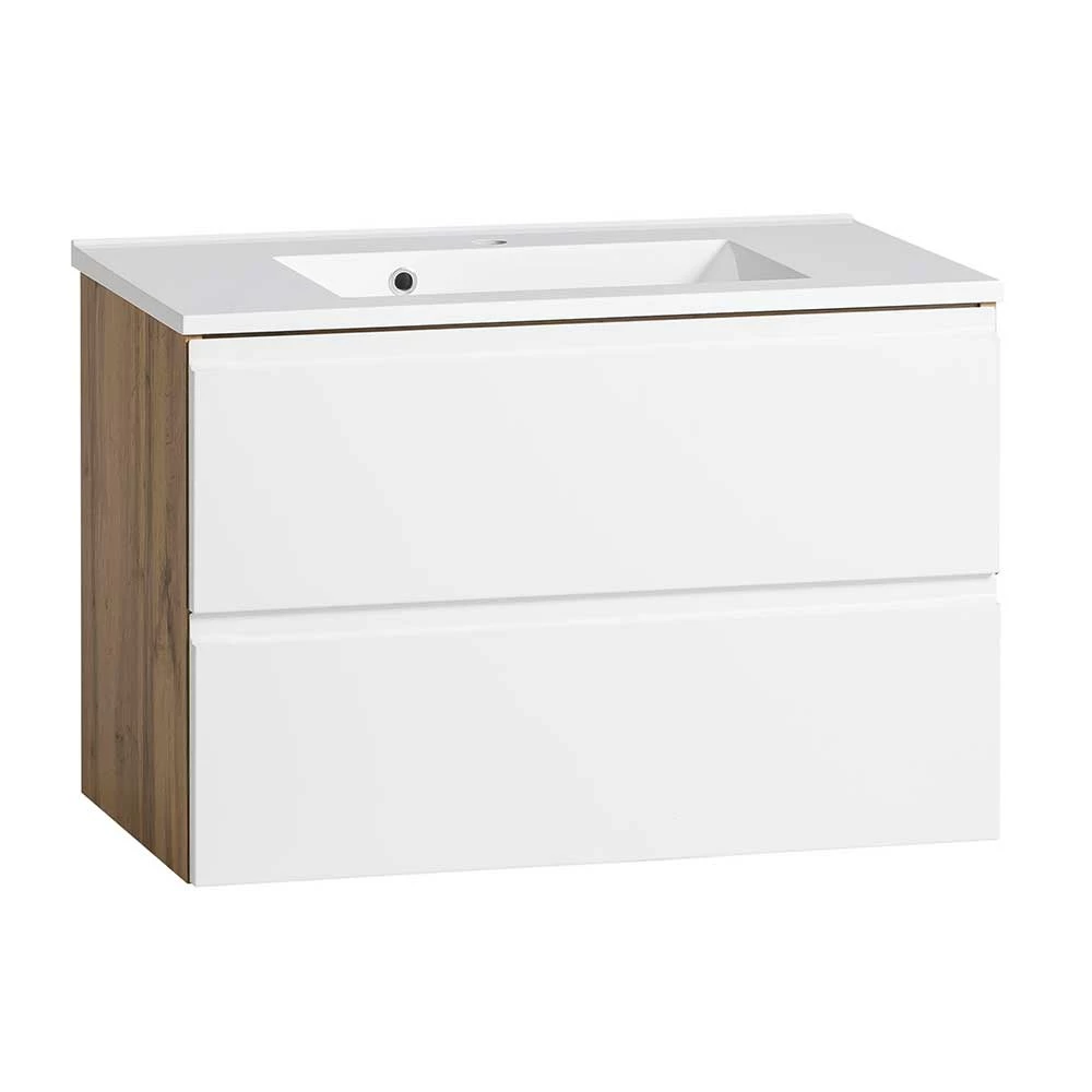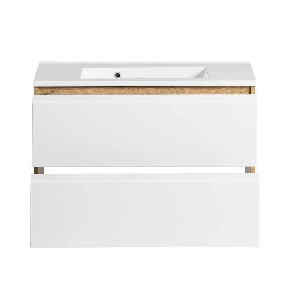 - Eleganter Waschtisch in Weiß matt und Wildeichefarben