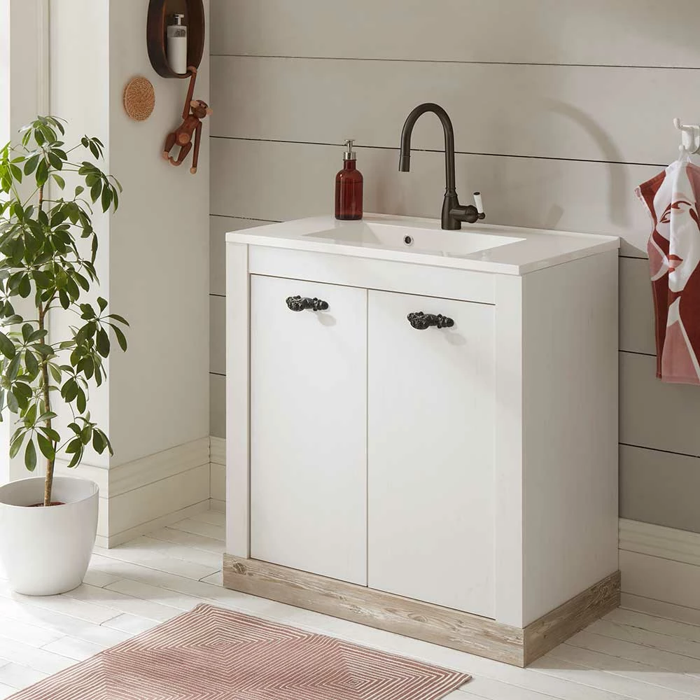 - Charmanter Waschtisch in Weiß und Pinienfarben