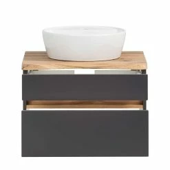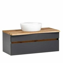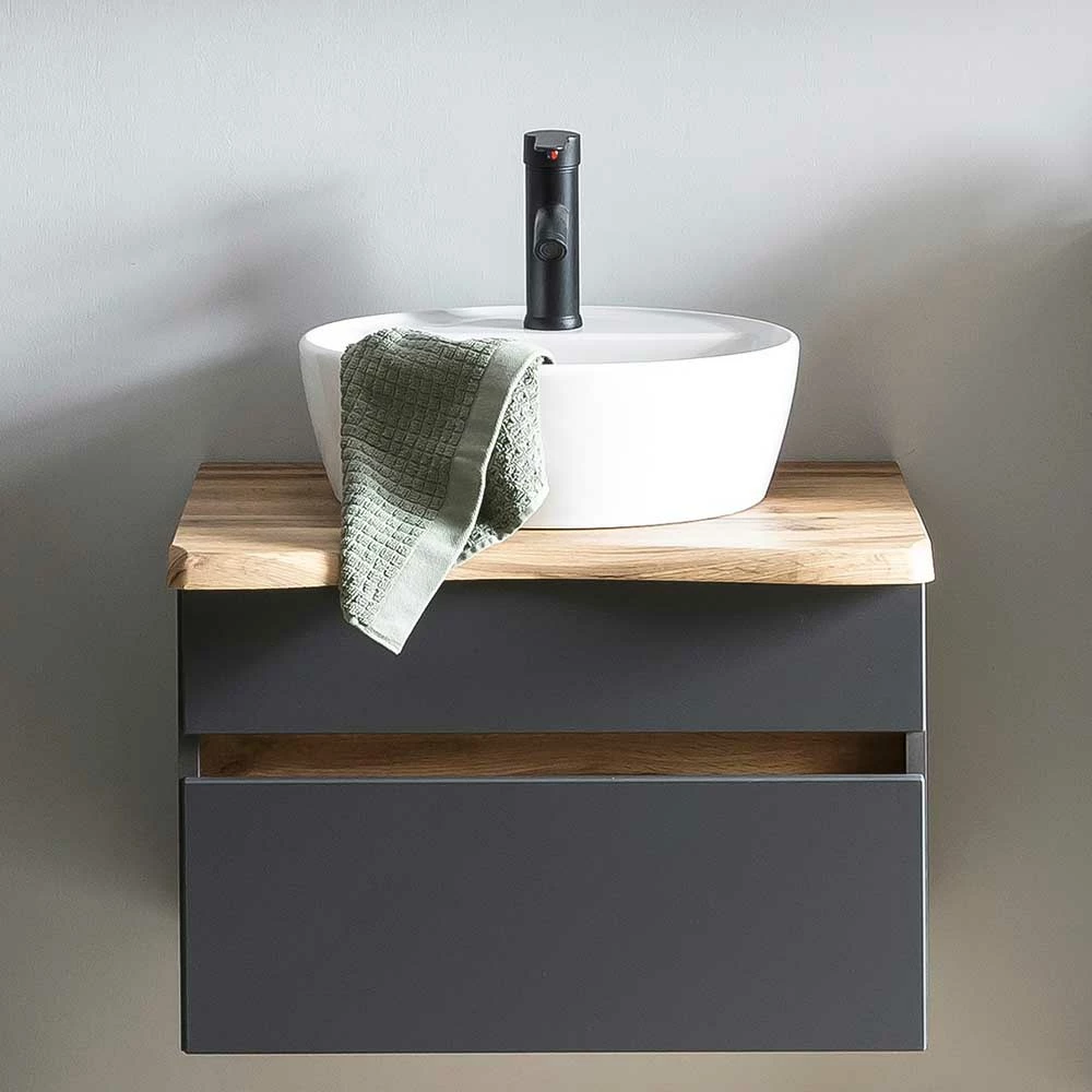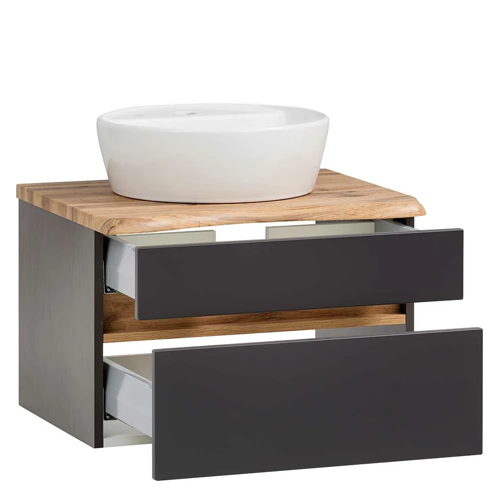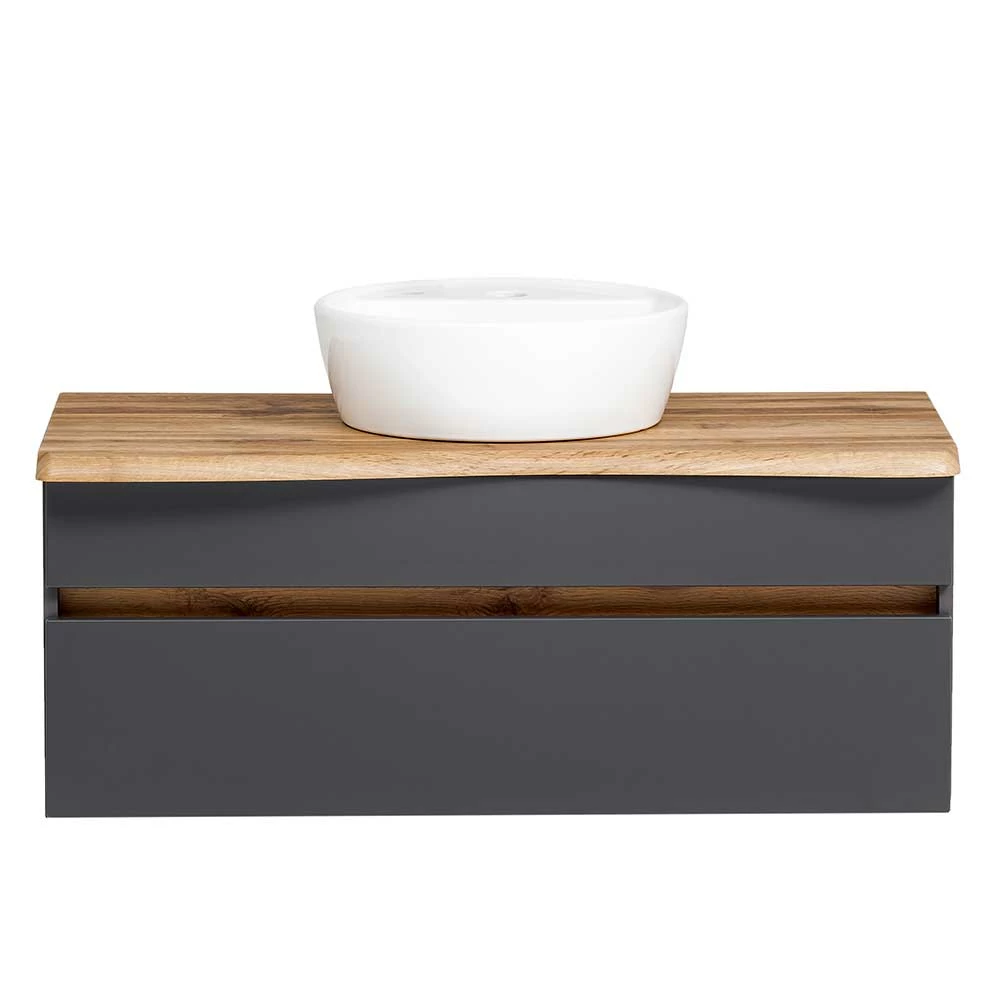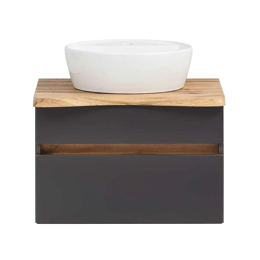 - Trendstarker Waschtisch mit Baumkante in Dunkelgrau und Wildeichefarben