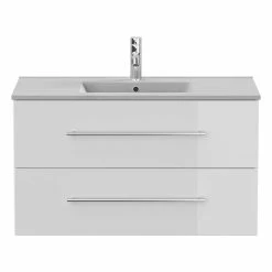 - Eleganter Waschtisch in Weiß und Beton Grau