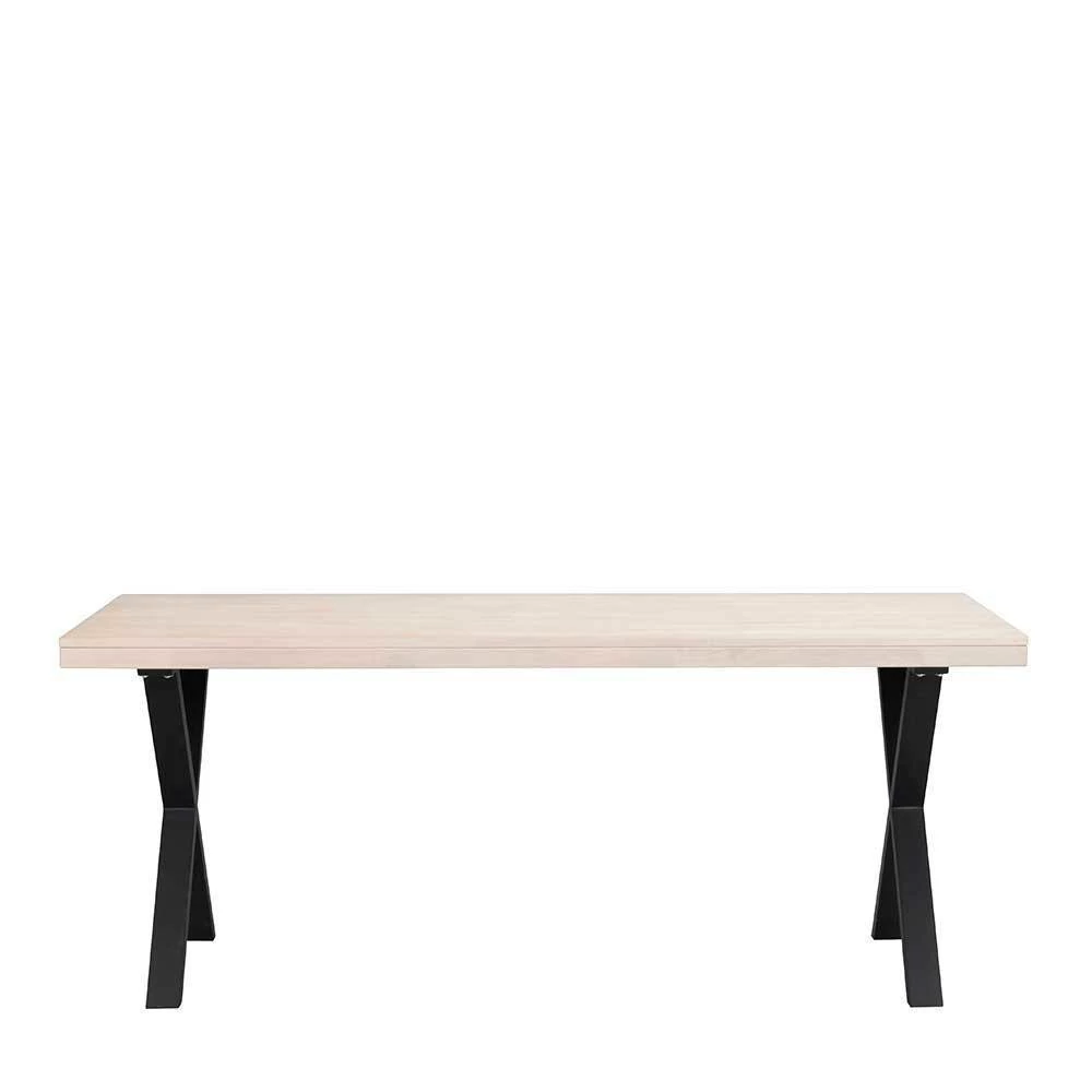 - Tischplatte aus massiver Eiche in einer Stärke von ca. 1,8 cm, am Rand aufgedoppelt auf ca. 4 cm